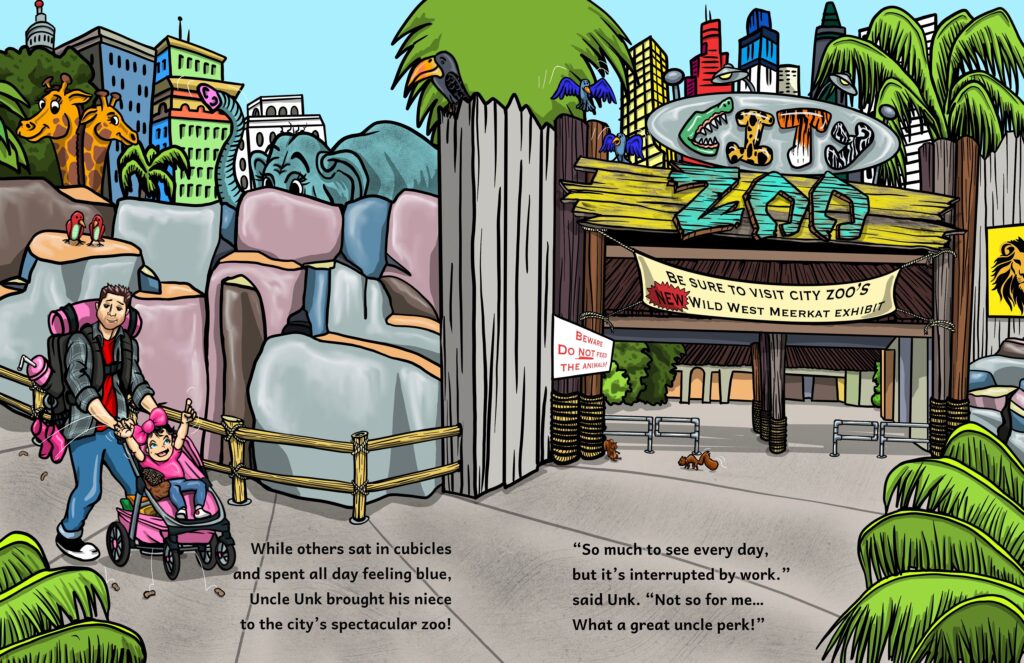 Who let the crocs out? Not Uncle Unk! For him, life is only getting crazier. This time, Unk’s taking a trip with his niece to the City Zoo, where all the monkeys, rhinos, and meerkats are up to no good. It’s up to Unk to save the day! …Hopefully he won’t mess up too badly.